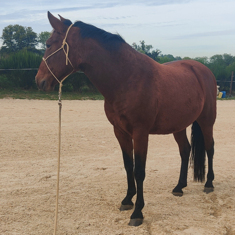 (je crois qu'en 5 ans c'est la première fois que je l'entends hennir quand j'arrive, je fonds d'amour) elle sort en liberté, plonge son nez dans son licol et se pose sur mon ventre pour faire une léchouille, SI CHOU !