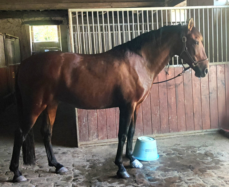 J'avais refait un petit soin énergétique la veille et soulagement, quand je suis arrivée plus du tout de boiterie et plus de sensibilité à la pince ! J'ai refait les soins + massage complet avant de la remettre enfin au pré : Calina heureuse de retrouver ses copains après 5 jours de paddock solo