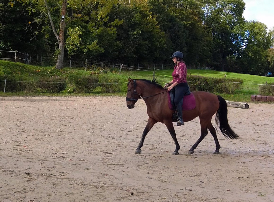 Test des allures sur de tout petits cercles (au trot et au galop) : pas de gêne et elle me fait ça super bien !