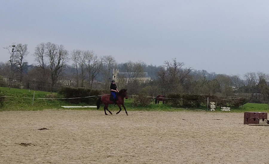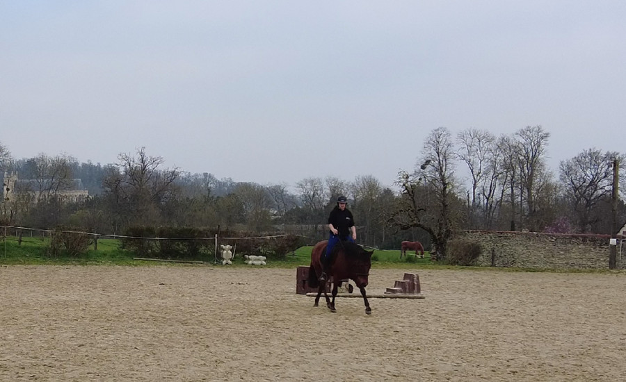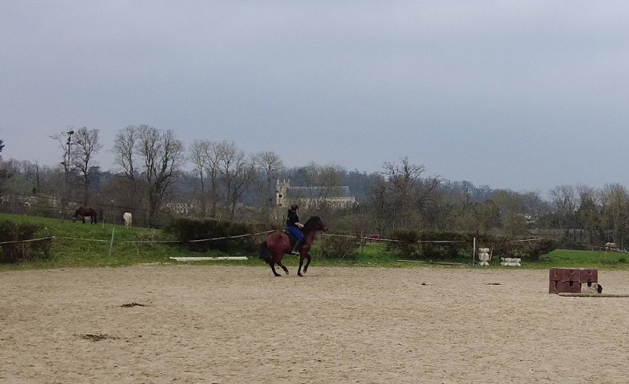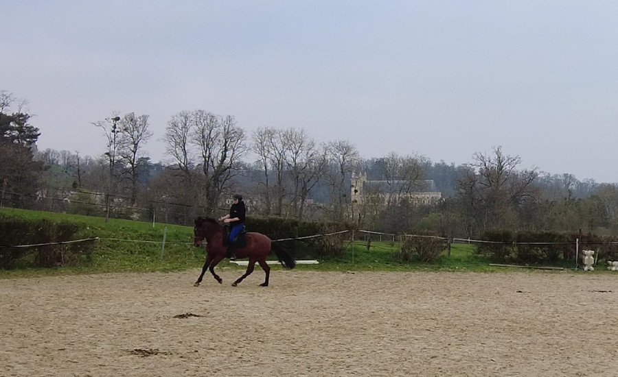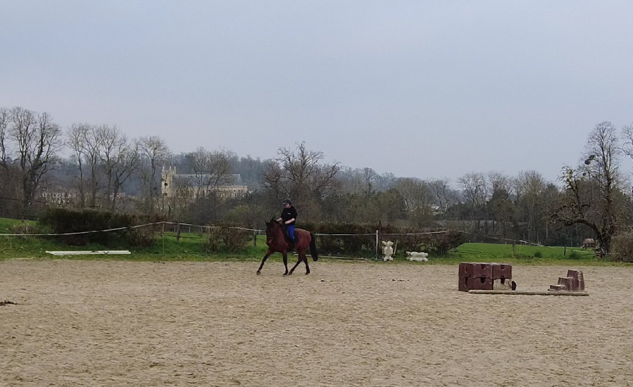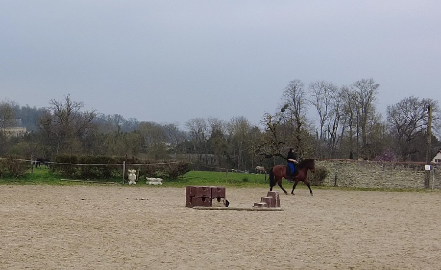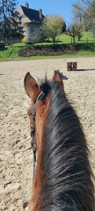 (plus que ravis de faire les baby-sitters) j'ai fait très basique pour ne pas trop traîner mais surtout, il y avait une autre personne dans la carrière qui n'était pas contente de voir quelqu'un avec elle et qui m'a bien fait comprendre que mon existence la gênait : elle s'était mise à l'intérieur de la carrière pour préparer son cheval donc j'ai demandé poliment si je pouvais rentrer
