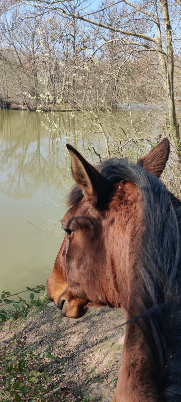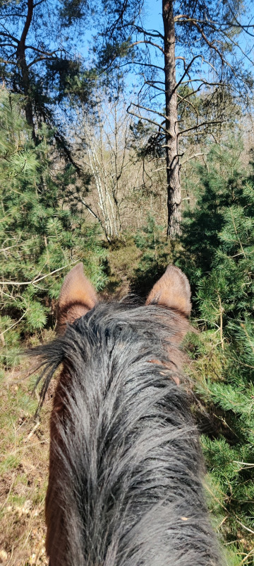 Au final non au 1er montoir. Non au second. Ok au 3ème où elle s'est calé à côté sans que je ne lui demande. Petit tour au pas tranquille de 5km avec juste un galop dans les pins ^^