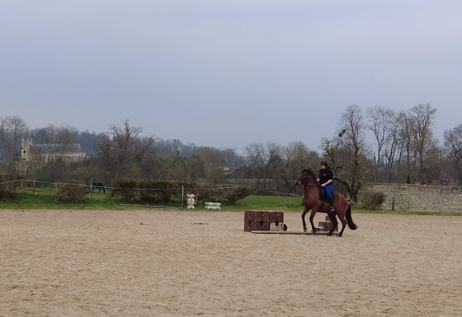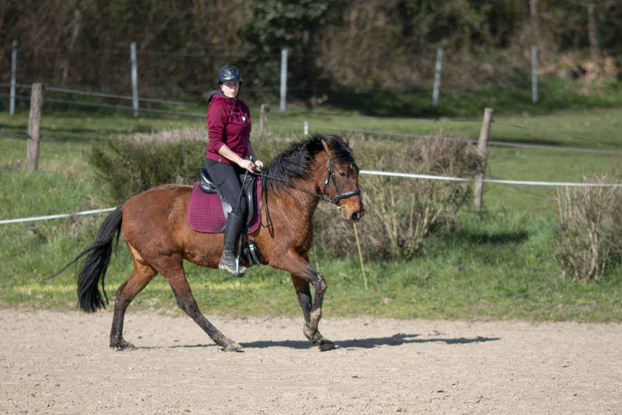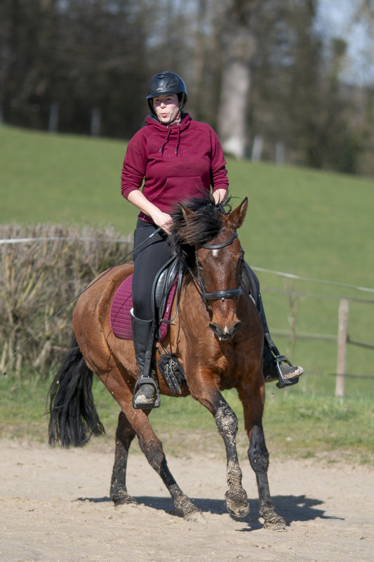 Focus sur le fait de ne pas se précipiter dans les montantes / ne pas trop s'éteindre dans les descendantes tout en étant plus fine dans mes aides et mes actions de mains. Calina s'est bien pris au jeu