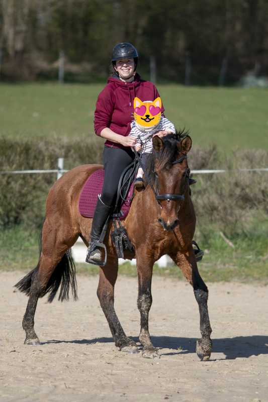 Bébé chat a demandé à venir sur le poney à la fin, on a fait quelques pas, elle était trop heureuse