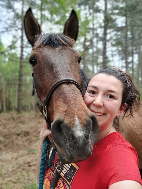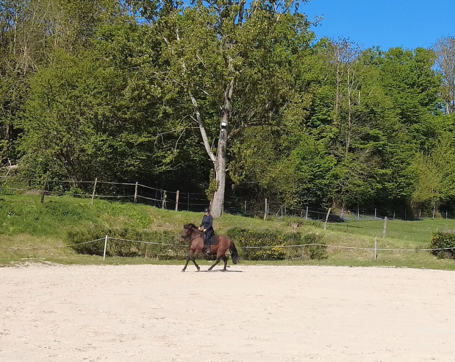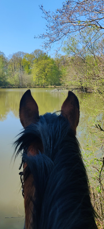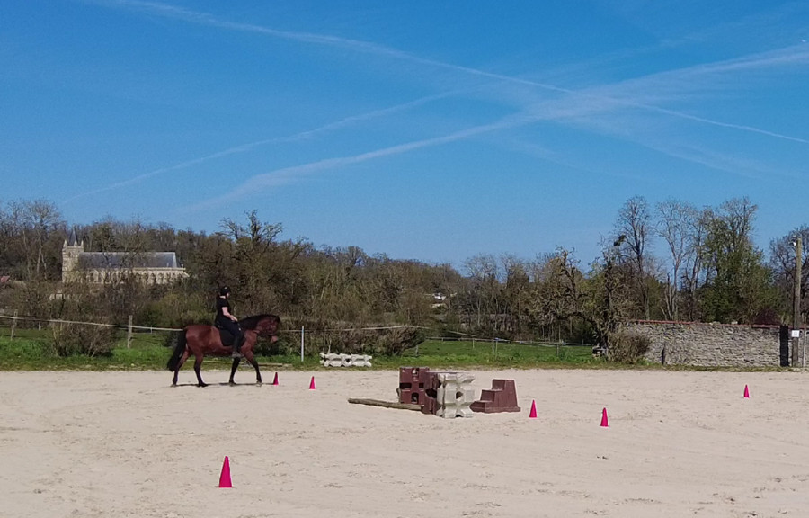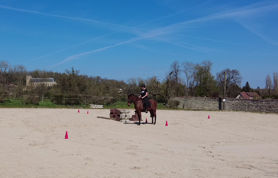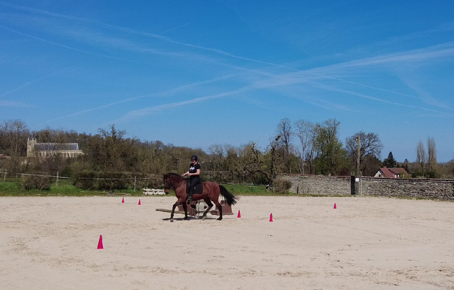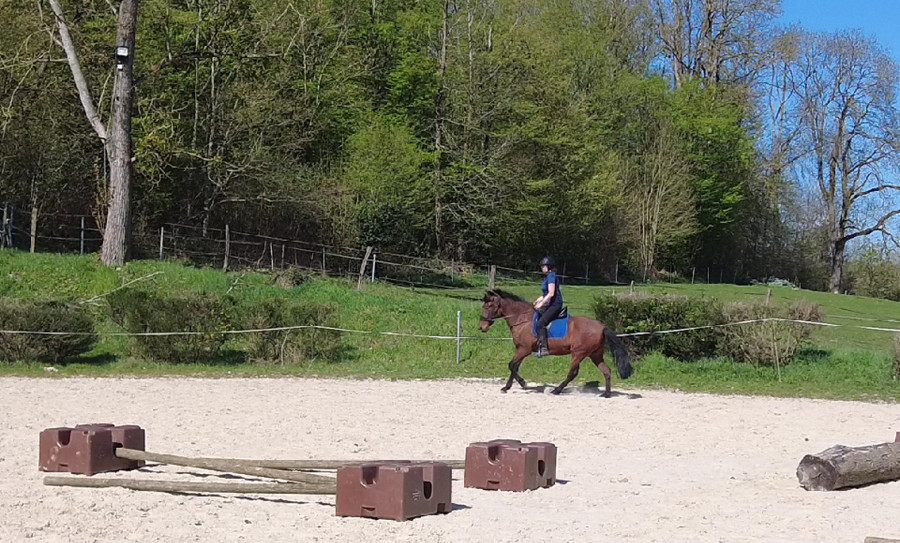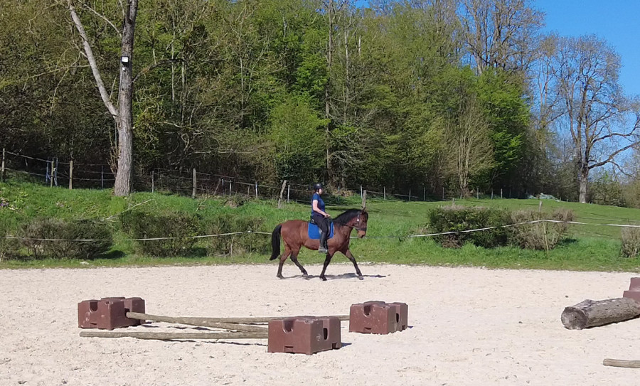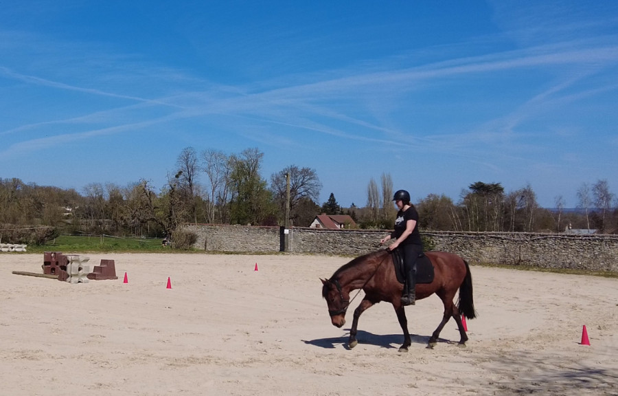 (le mouvement en avant reviendra quand elle sera capable de se bien se tenir "par défaut", je ne suis pas trop inquiète vu qu'elle a une tendance naturelle à vouloir avancer) on cherche LA bonne sensation d'un garrot qui monte et d'un dos qui fonctionne. Encore une belle séance avec une Calina qui s'arrête d'elle même si elle part en déséquilibre ^^
