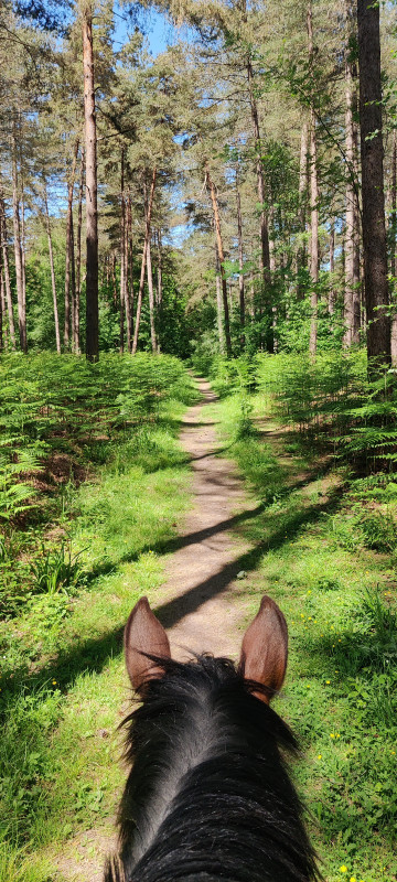 (sauf si elle voulait aller sur des boucles trop grandes, j'étais sur ma pause dej quand même) en laissant les rênes posées sur l'encolure ^^ chouette moment avec personne dans la forêt, un bonheur !