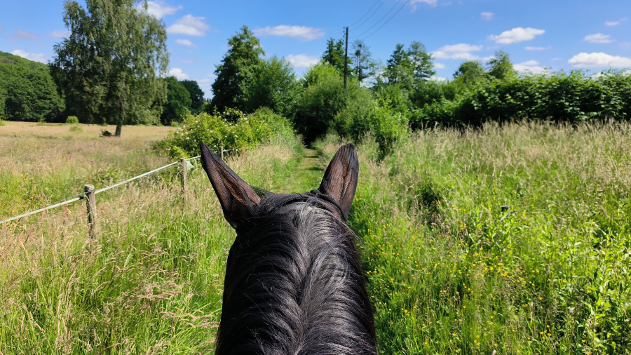 Beaucoup de pas vu la chaleur qu'il faisait, quelques petits galops pour le fun et... Une Calina stressée sur les nouveaux chemins gloups. J'ai adapté en faisant moins long que prévu, on sort de la zone de confort sans aller dans le rouge pour autant