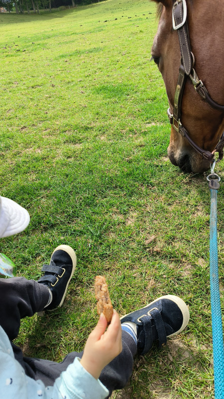 On est juste passé avec Chérichou et Peachounette pour la faire brouter sans le panier.