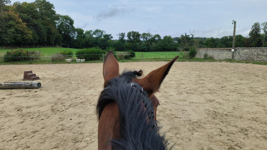 Miracle pas de pluie quand j'y suis allée, du vent mais pas grand monde aux écuries alors je me suis motivée en descendant toutes mes affaires pour une séance en carrière.