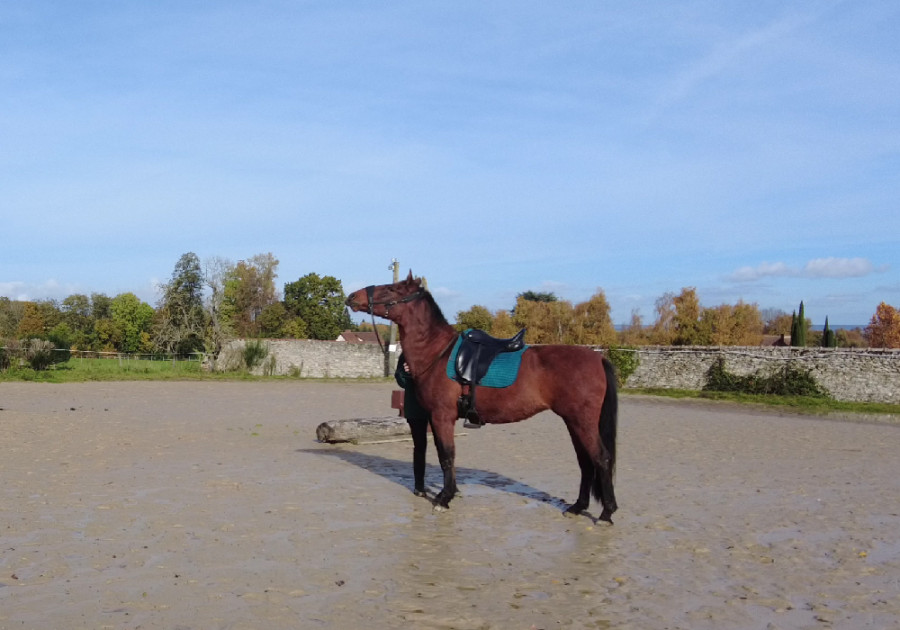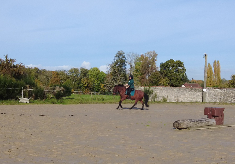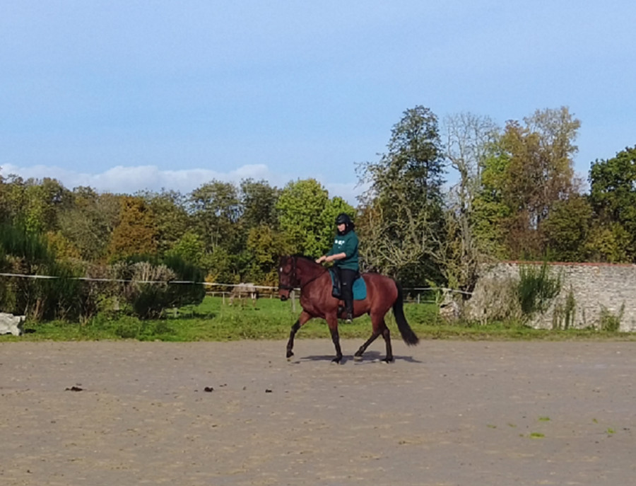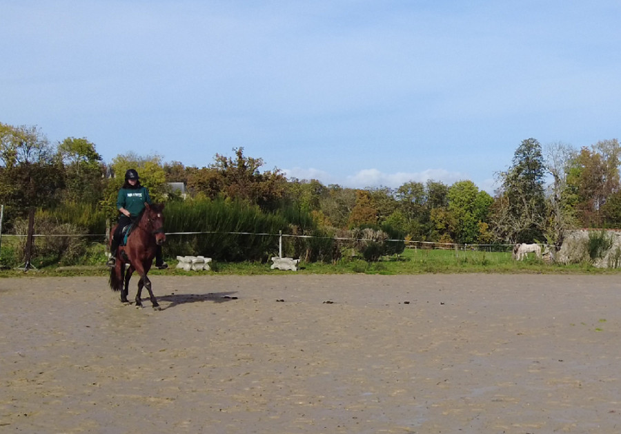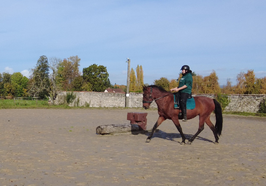 Je trouve qu'elle va de suite dans de "bonnes attitudes", preuve qu'elle doit se sentir de mieux en mieux dans son corps, je suis contente ! Encore quelques sujets sur les transitions trot-galop à main droite si je demande trop rapproché mais un vrai net mieux au global donc ça progresse ^^