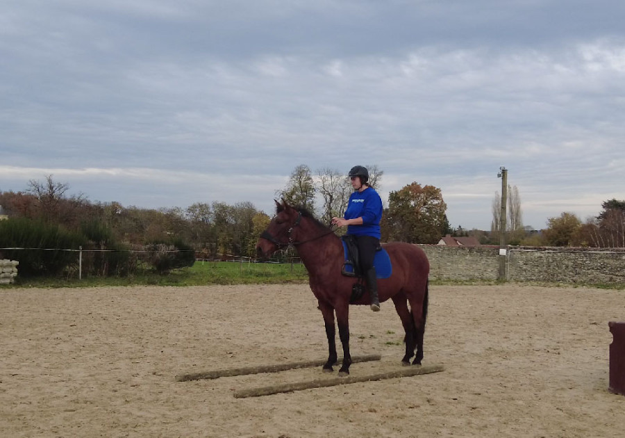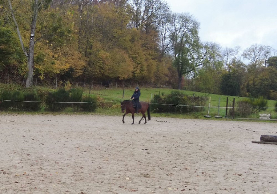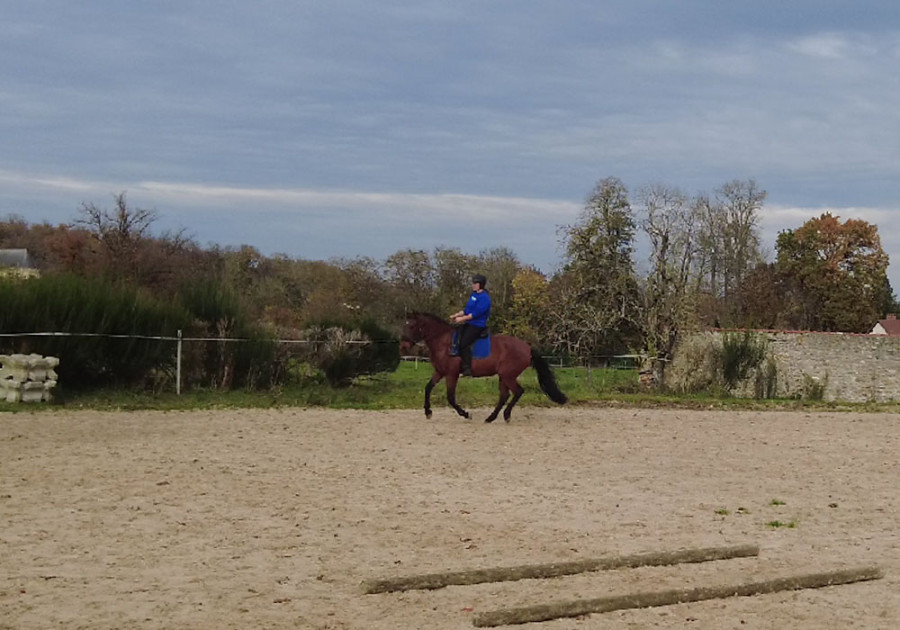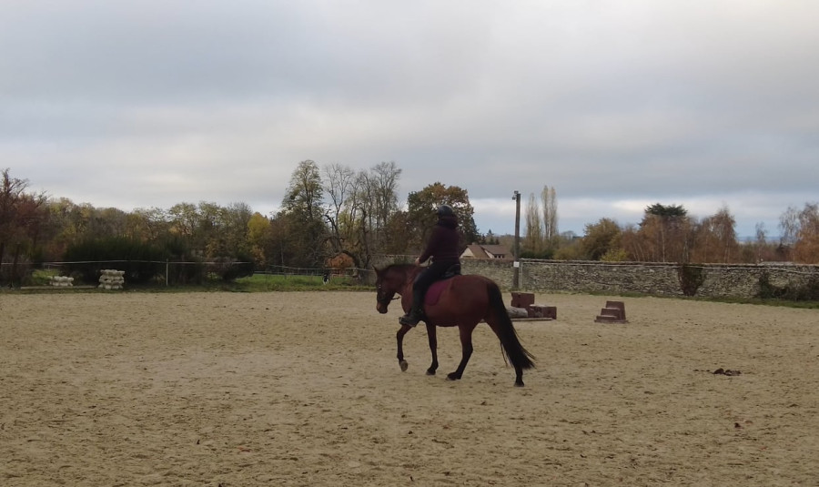 Mini long avec la couv' pour réchauffer gentiment le dos puis à cheval avec révision du cours précédent : vu de l'extérieur on devait vraiment se demander ce que je faisais parce qu'objectif de la séance, ne "rien" faire !