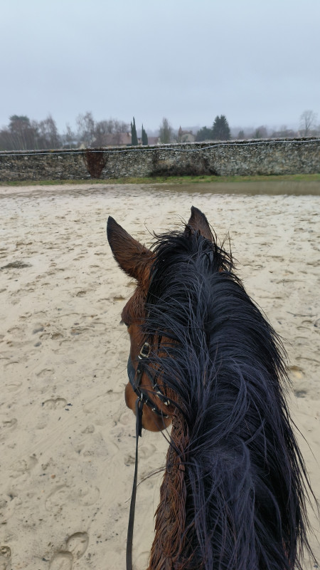 Après j'ai bossé un peu la décontraction au trot et les transitions dans l'EED pas-trot-pas, de belles choses !