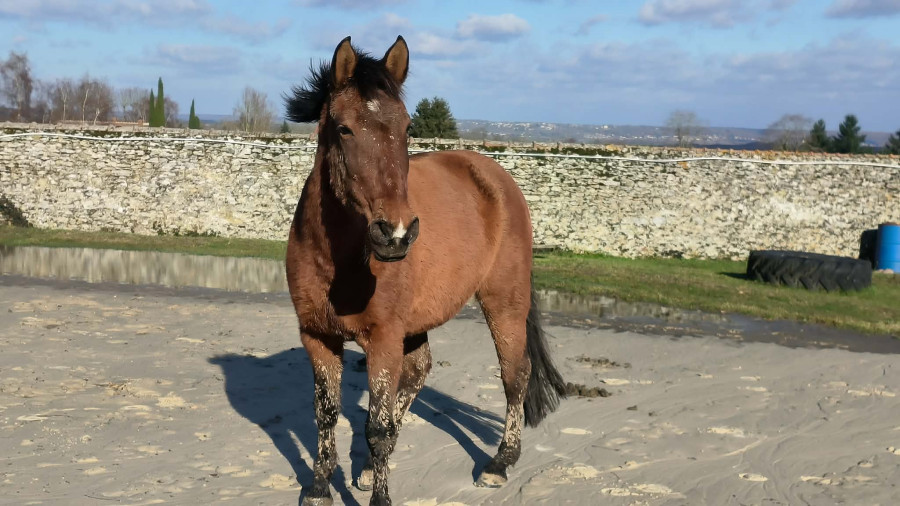 Lib pour commencer, où elle a fait sa détente en autonomie aux 3 allures sans faire l'andouille malgré le vent. J'ai l'impression qu'elle s'apaise de mieux en mieux en carrière je suis contente ^^