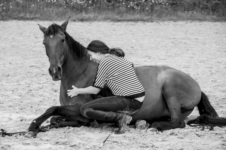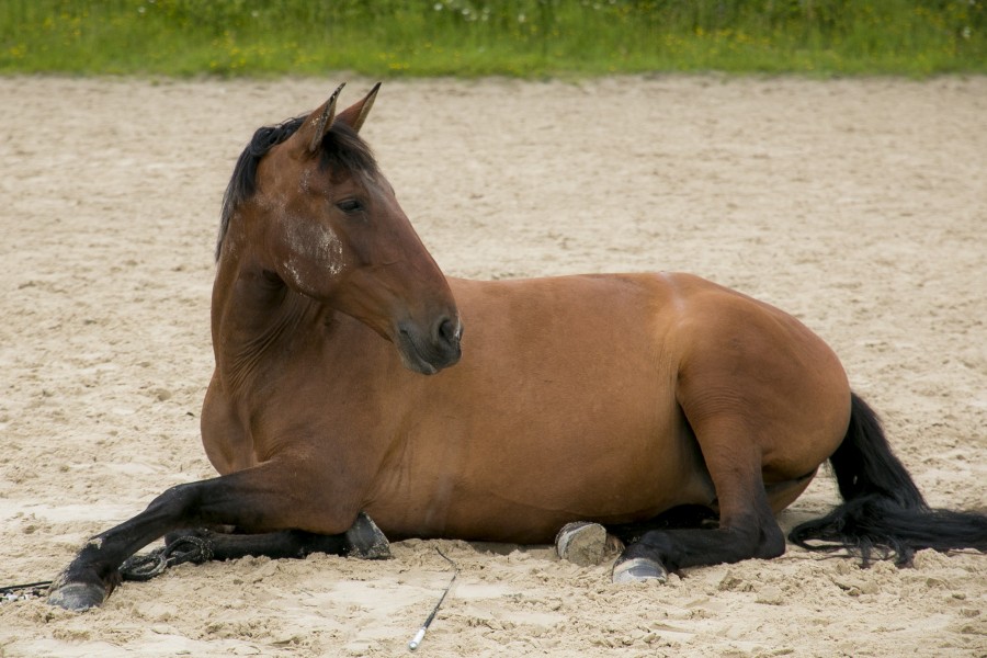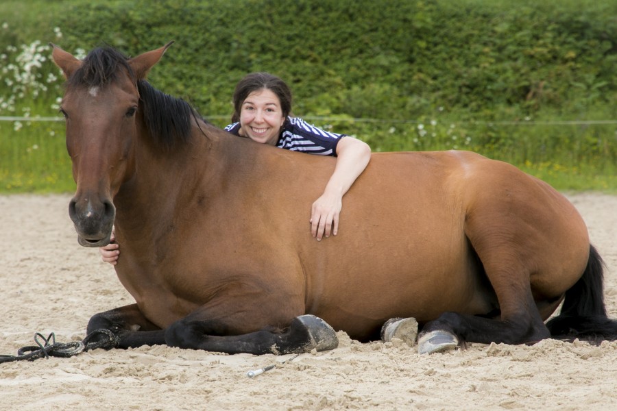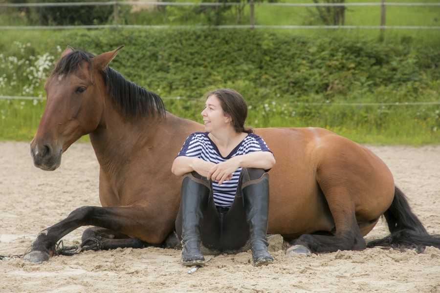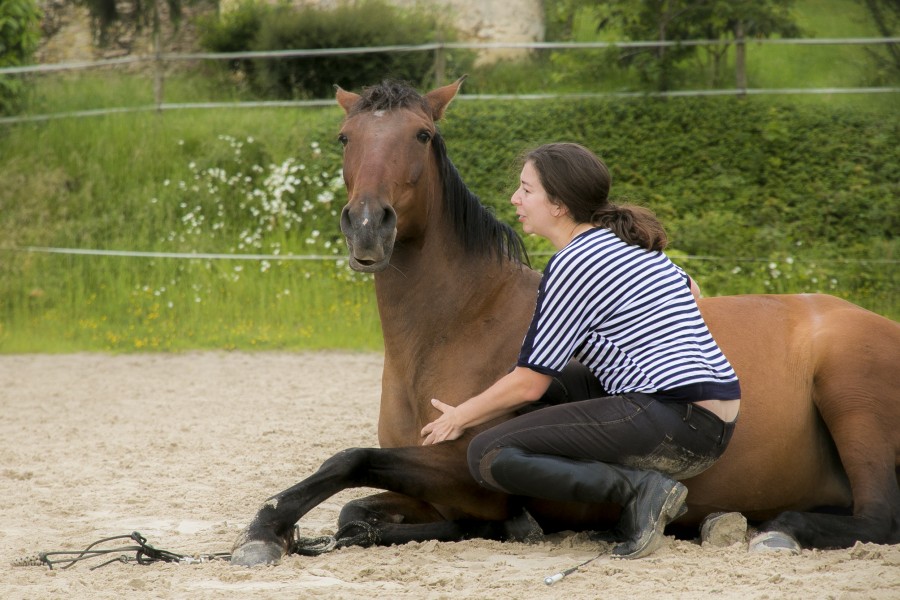 Une fois dessellée, je tente de demander le coucher mais Calina n'a pas l'air convaincue… Ok ce n'est pas grave, je redemande une dernière fois et j'arrêterai là-dessus. Et là surprise… Elle se couche !!