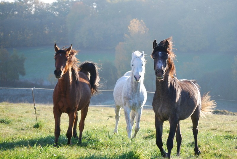 parasi ben vous verrez comment ça se passe, mais s'il n'a vraiment pas l'habitude d'être avec les chevaux, moi je le mettrais pas de suite dans le même pré qu'un autre. Les mettre côte à côté en box, c'est une bonne solution par contre.