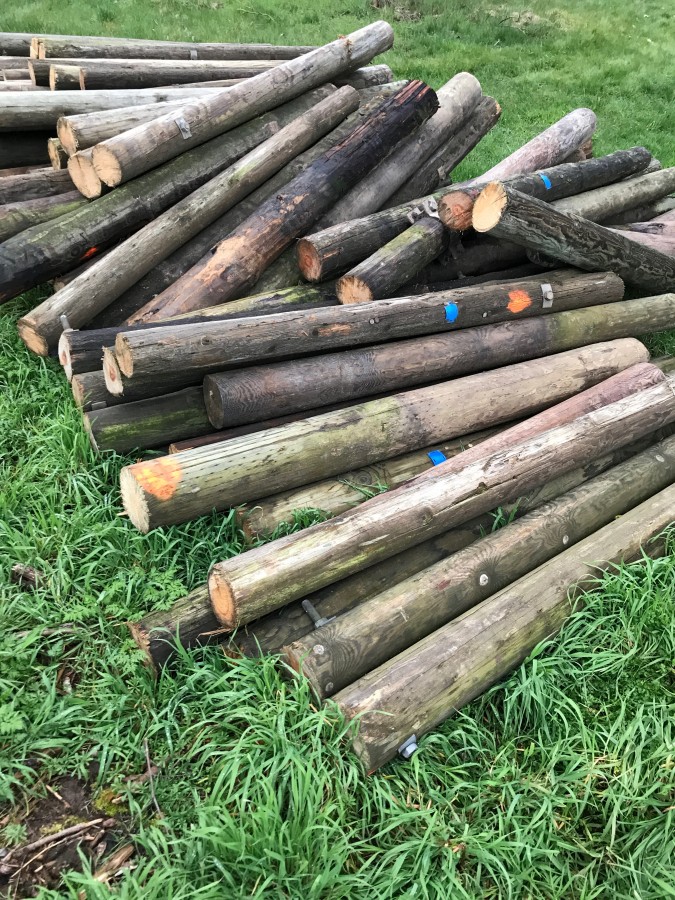 Le jolie tas de piquets que l'on doit encore traiter et préparer