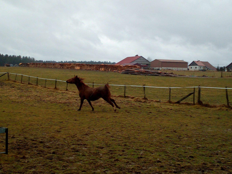 C'est une jument PSAr alezan de 1m 54, je me pose des questions sur ses origines, c'est une jument d'endurance qui n'a pas énormément couru, mais son premier poulain (15 actuellement) tourne en 130/160 km, et sa deuxieme fille à été exportée à Dubaï, elle tourne aussi sur de grandes courses.