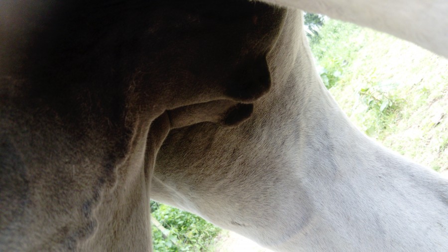 Sa deuxième était en 2015 elle a fait beaucoup plus de pis, un pis énorme, elle a cirer 4 jours et elle pissait le lait le dernier jour, elle a pouliné le soir même quelques jours après les 11 mois
