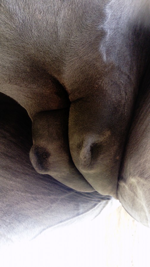 Enigma m'a entendu quand je lui disait que je n'était pas là se soir et à reculer en calcium (2 carrés aujourd'hui) et le pis a très légèrement dégonflé , elle va me rendre chèvre lol ! Je pensais commencer à veiller demain (pour rappel avant qu'on me disent que vu le calcium et le ph ça ne sert à rien, l'année dernière elle a pouliné sans que le calcium et le ph ne soit prêt et avec un pis pas plein plein (même si je pense que c'était les forte chaleur qui avait aidé, je préfère me mefier), mais je verrai en fonction de son pis et des bandelettes, la vulve commence à changer et la croupe a bien ramollie !