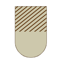 - Carrière semi-couverte en bois de 20x60 avec une extrêmité en semi-rond de longe, pour avoir toutes les aires de travail au même endroit afin de garder de l'espace et diminuer le coût. Et en + une tribune/club house avec partie couverte/fermée et terrasse. Au cas où c'est pas très clair, ça ressemblerait à ça (ce qui est couvert est représenté en strié ; la tribune n'y figure pas encore) :