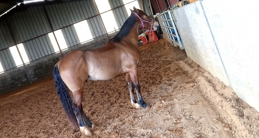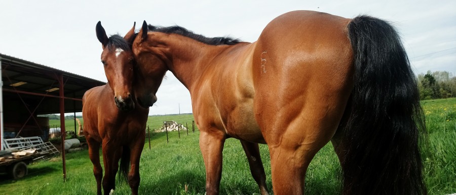 Et voilà mon Dénébola en main chaud comme la braise ! Et que je ronfle , je me gonfle , la queue en panache , je trottine sur place , m'initie au piaffer , tourne en rond ... Je ne l'avais jamais vu se comporter de la sorte ! Lui d'habitude si calme & doux . Je ne tente pas le diable il ne tient vraiment pas en place et le non respect de ma bulle ne semble plus très loin . Je n'insiste pas et retourne dans le manège pour qu'il continu de dégazer . Ce qu'il fît !