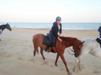 Avant, dans mon ancien club, on m'a toujours appris le galop asssis et on a jamais fait du galop en équilibre. Maintenant, j'ai changé de club, mais on doit être en équilibre, je commence à m'améliorer sur ce point là mais ça me fait mal aux genoux et je n'aime pas du tout les étriers de club...