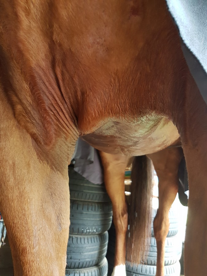 ça l'a démangeait. Le véto m'a dit de lui doucher le poitrail et si au bout de plusieurs jours pas de changements il donnerait des anti-inflammatoires. Je la douche, à part si je grattouille elle groom et s'appuie mais pas d'autre symptômes. Le lendemain ça avait dégrossi mais c'était élargie, j'avais de l'anti-inf j'en ai mis après la douche. Le surlendemain peau flasque. Et encore le lendemain peau tendu et tout beau!