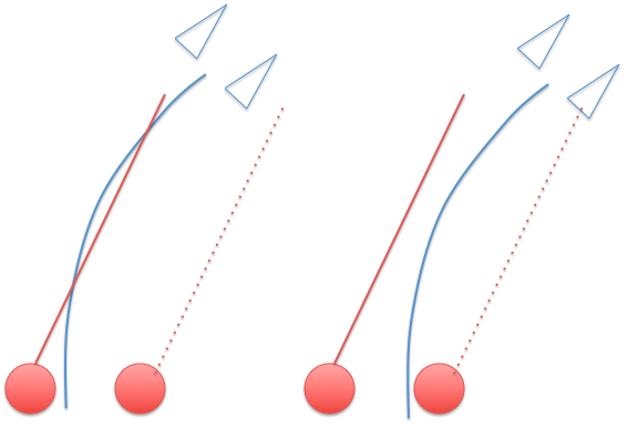 Quand tu pousses avec ta jambe, que ton regard change de direction (pour ma part, les épaules restent centrées), tu peux aussi décaler ton couloir de rêne. Ça ne veut pas dire changer les aides de tes mains. Petit schéma :