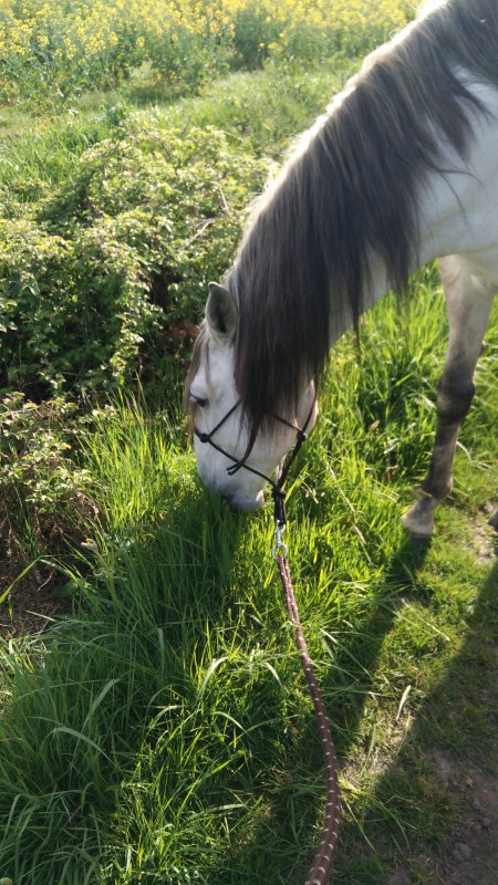 Et nickel, ça s'est super bien passé Monsieur à même brouté et à part essayer de marcher un peu trop vite par moment il n'a pas bougé. Les 2 ou 3 fois où il a essayé de me déborder je lui ai mis le stick devant et ça a suffit à calmer le jeu.