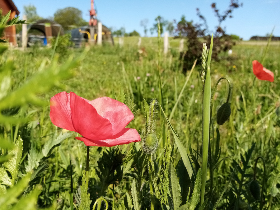 Ici, la pluie arrive tout doucement. Je suis allée faire un tour dans mon jardin et puis j'ai fait tour complet.
