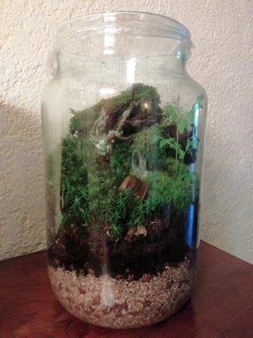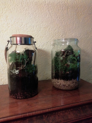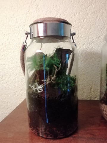 Du coup pour passer le temps j'ai réaliser deux petits terrarium végétaux ce midi.. J’essaierais de les prendre en photo si j'y arrive... Sans qu'on ne voit que mon reflet dans le bocal...