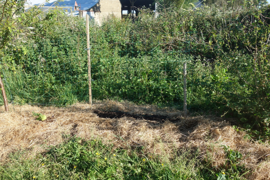 A la suite de cette ligne, j'ai des noisetiers, des framboisiers, du maïs, des courgettes, des fêves. Je planterais sans doute encore un pied de courgette, et peut être des haricots à rame, pour qu'ils grimpent sur le maïs !