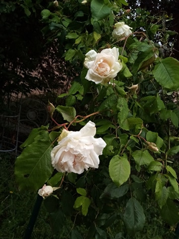 Le rosier de la voisine qui retombe chez nous, derrière la mare ! Je le trouve absolument fantastique !