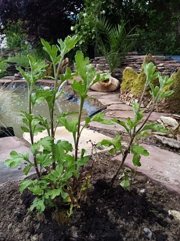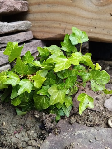 On a récupéré une compo qu'on avait acheté et que l'on avait mise sur la tombe de mon beau père. Ici on a repiqué le lierre, entre le muret et la mare !