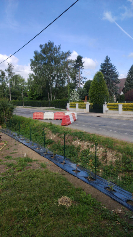Sachant que le bas du talus est à nous (oui oui très logique), on y a amenager un parc à poule. Donc j'hésite à continuer leur parc mais ça me fait un peu peur car cette partie donne le long d'une route (pas passante mais quand même) ou une jachère fleurie mais pas envie que les fougères y poussent au milieu...