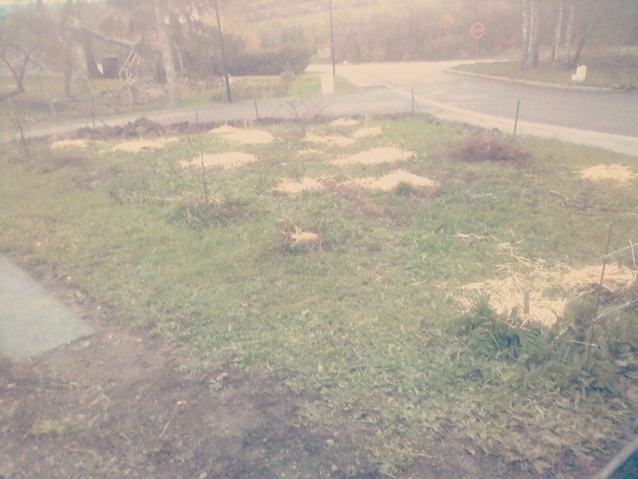 , on a décidé de se faire plaisir et de joindre l'utile à l'agréable en plantant des liquidambars, des bouleaux, et autres arbres aux couleurs sympas en automne.. j'ai ajouté des boutures de sureau et autres petits fruitiers en guise de garde manger entre les (futurs) grands arbres. Vivement le printemps pour voir ça autrement que comme un alignement de bouts de bois !
