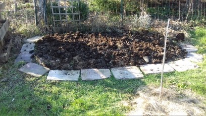 On a décidé avec chéri qu'on y ferait de la pomme de terre sous paille. Donc on va ramener du fumier que je vais disposer en "buttes" et faire des jolies formes, on va y mettre les patates et on va pailler le tout. C'est un essai, première fois qu'on en fera ici, on verra bien ce que ça donnera !