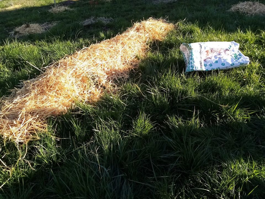 derrière c'est un endroit pour les patates qui seront posées en mai, et la ligne de droite petits pois/fèves et patates que je pose dans la semaine pour les pdt nouvelles. Les arbustes de cette ligne sont des petits fruitiers