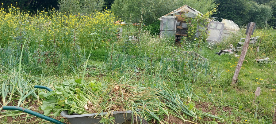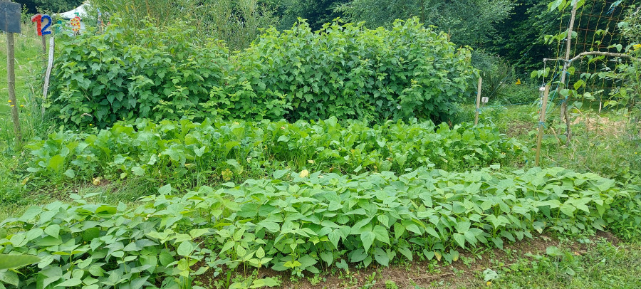 ) car ils se couchaient à cause de la pluie et prenaient une place folle. J'ai également coupé plein de pieds de framboisiers qui ne produisent rien ou presque (à la mi-ombre, c'est une bonne idée les années sèches mais alors là ...) donc j'ai pu obtenir quelques mètres carrés prêts à planter !