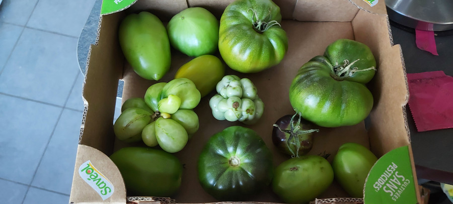 Et j'avais acheté quelques plants dont un de chez lidl mais c'est que des variétés anciennes que j'ai sauf celui de chez lidl je ne sais pas ce que c'est (j'ai en variétés ananas, banane, osu blue, cerise, noires, chocolat, miel du Mexique,litlle yellow, voyage, green doctor frosted, Black prince, et il m'en manque 2 que je ne me rappelle plus)