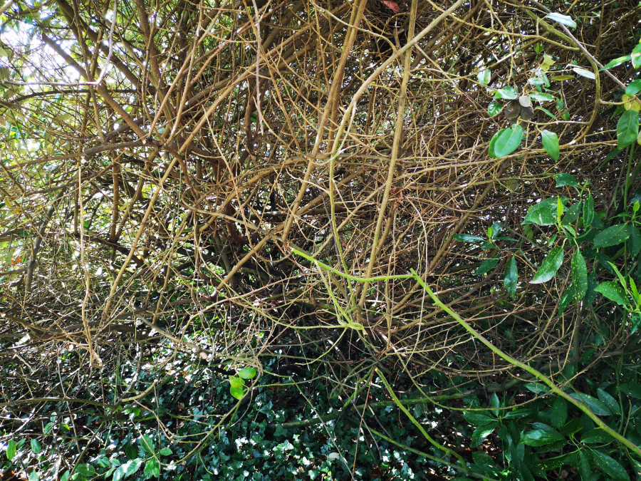 Au milieu il y a un eleagnus immense, j'aimerais lui redonner une taille convenable car il étouffe les autres arbustes autours.