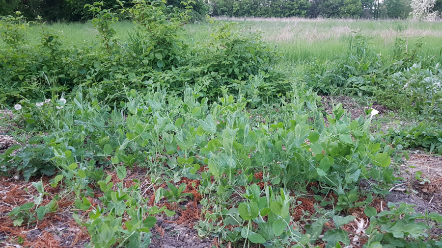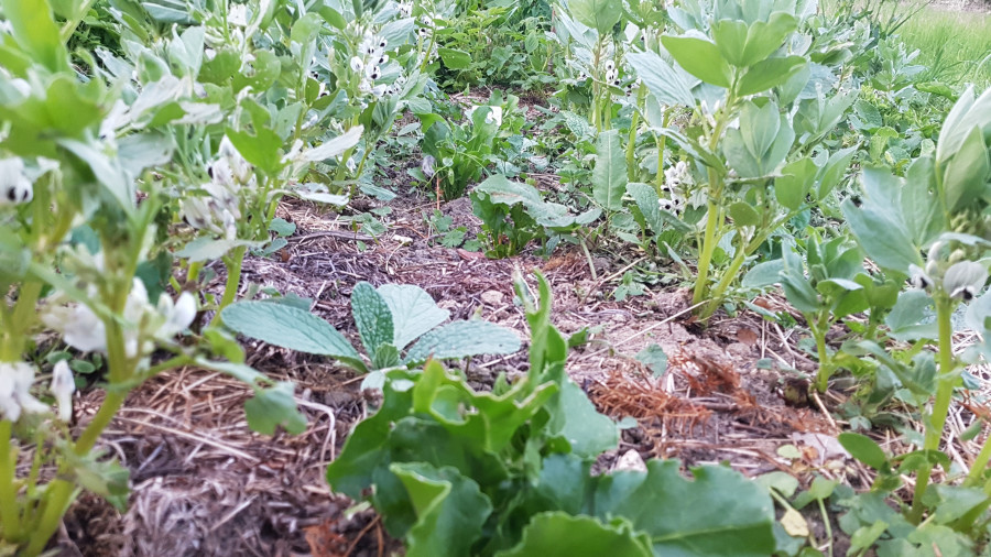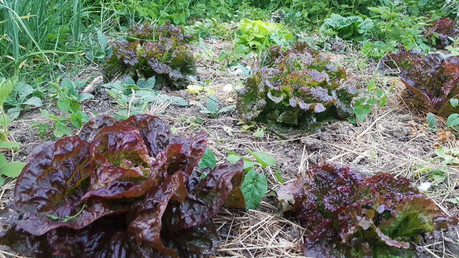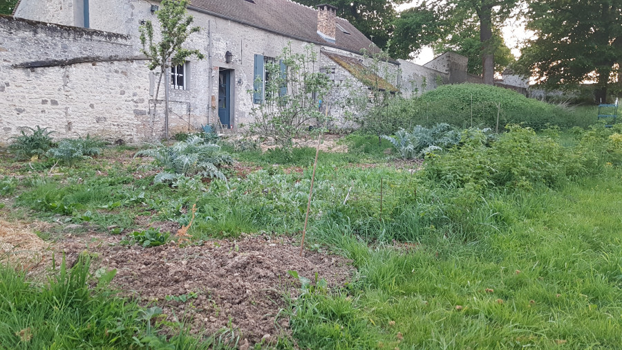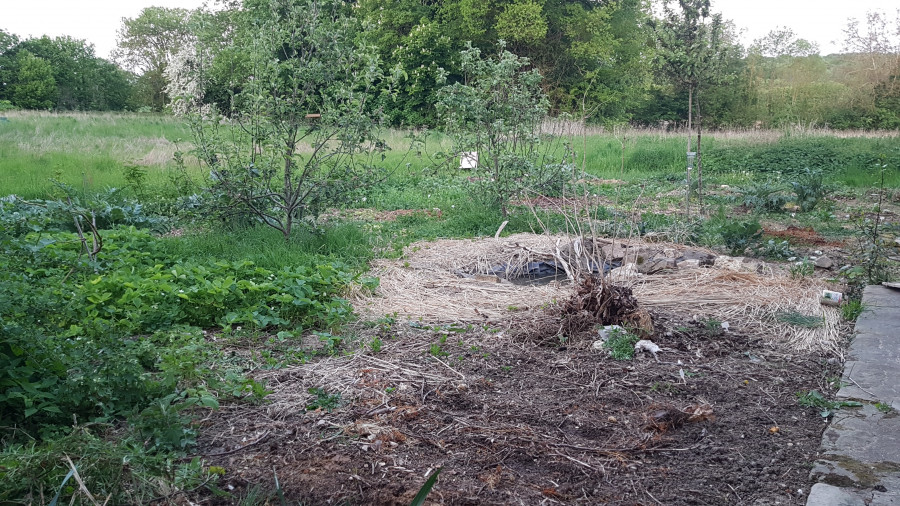 MAIS sur l'endroit que je prépare pour l'année prochaine, ça commence à bien grouiller ! J'ai mis pelouse, foin, carton, épluchures... Je suis contente ! J'ai terminé de nettoyer et huiler mes lattes de terrasse, j'ai pile la quantité pour encadrer cette parcelle.