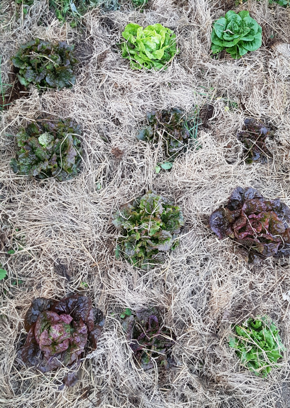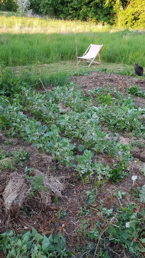 J'ai bien désherbé ce soir, ça fait du bien ! Les fèves sont dégagées, les salades paillées, les orties arrachées ...