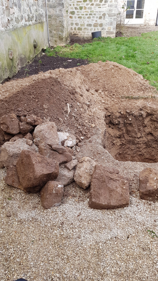 Mais regarde ce qu'on s'est cogné de l'autre côté du jardin ... c'était sans doute une ancienne cours pavée ...