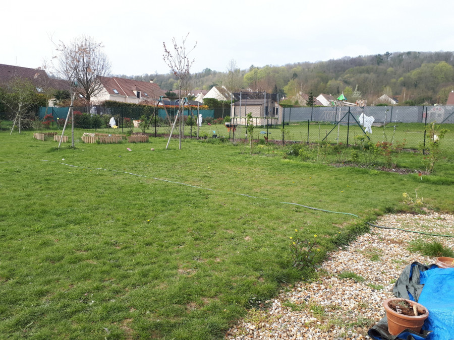 - A droite, il y a un espace "roseraie" où j'ai une 10aine de rosiers (dont les 3/4 sont des rosiers à fleurs double). J'espère pouvoir mettre une arche en bois en entrée & sortie de ma roseraie pour mes 2 rosiers grimpants. Le but c'est d'avoir un couloir avec à gauche mes rosiers et à droite des arbustes à fleurs qui sentent bon. Une sorte de sentier des senteurs