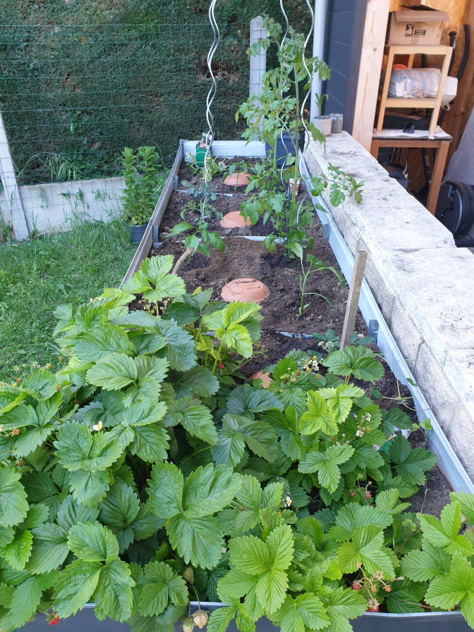Mes petits pois sont grave à la ramasse, en fait une partie a été boulottée c'est sûr mais le reste je viens de les retrouver cachés sous les pommes de terre = on dit merci aux chats d'avoir déplacer les graines