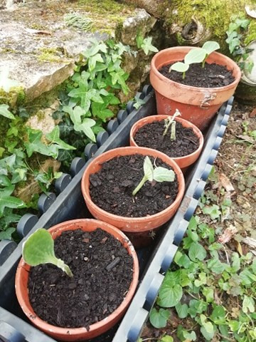 au premier plan, 3 butternut qui m'ont été donné agonisant à Super U , j'ai bon espoir d'en avoir sauvé deux.