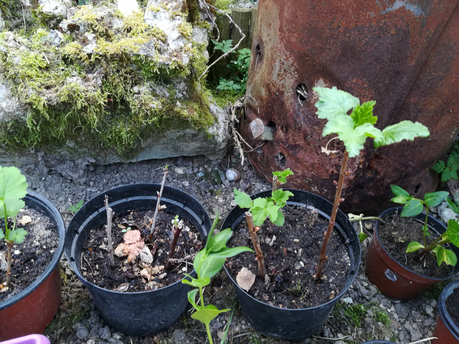 Et mes boutures de cassissiers et groseilliers faites à l'automne: