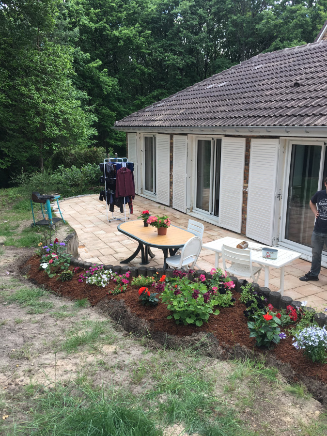 L'année dernière on s'est fait plaisir: on a cré un parterre de fleur derrière pour en profiter sur notre terasse