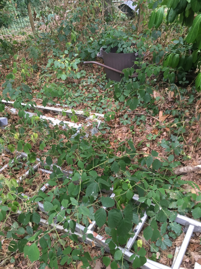 L'arrière était en friche, avec des tas de déchets végétaux divers et variés, on a retrouvé des échelles, chûtes de carrelage, clou et même une peau de serpent ...)