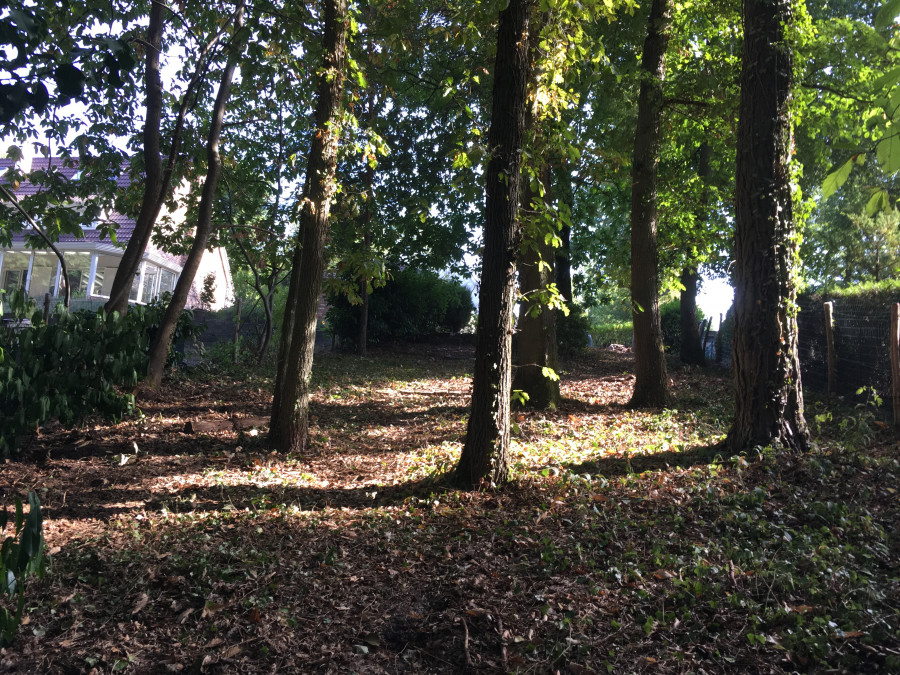 Jardin un peu sauvage chez moi: une petite bande devant la maison et 800m² de foret derrière, en pente